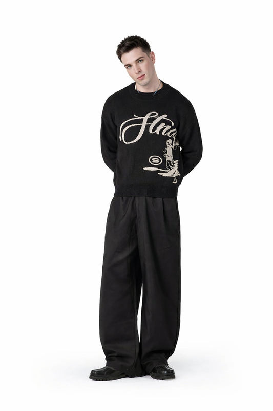 Echoes Oversize Triko Kazak - Siyah