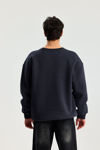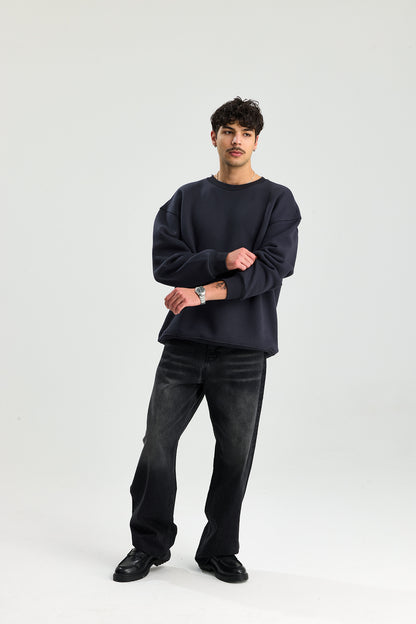 Basic Bisiklet Yaka Oversize Sweatshirt