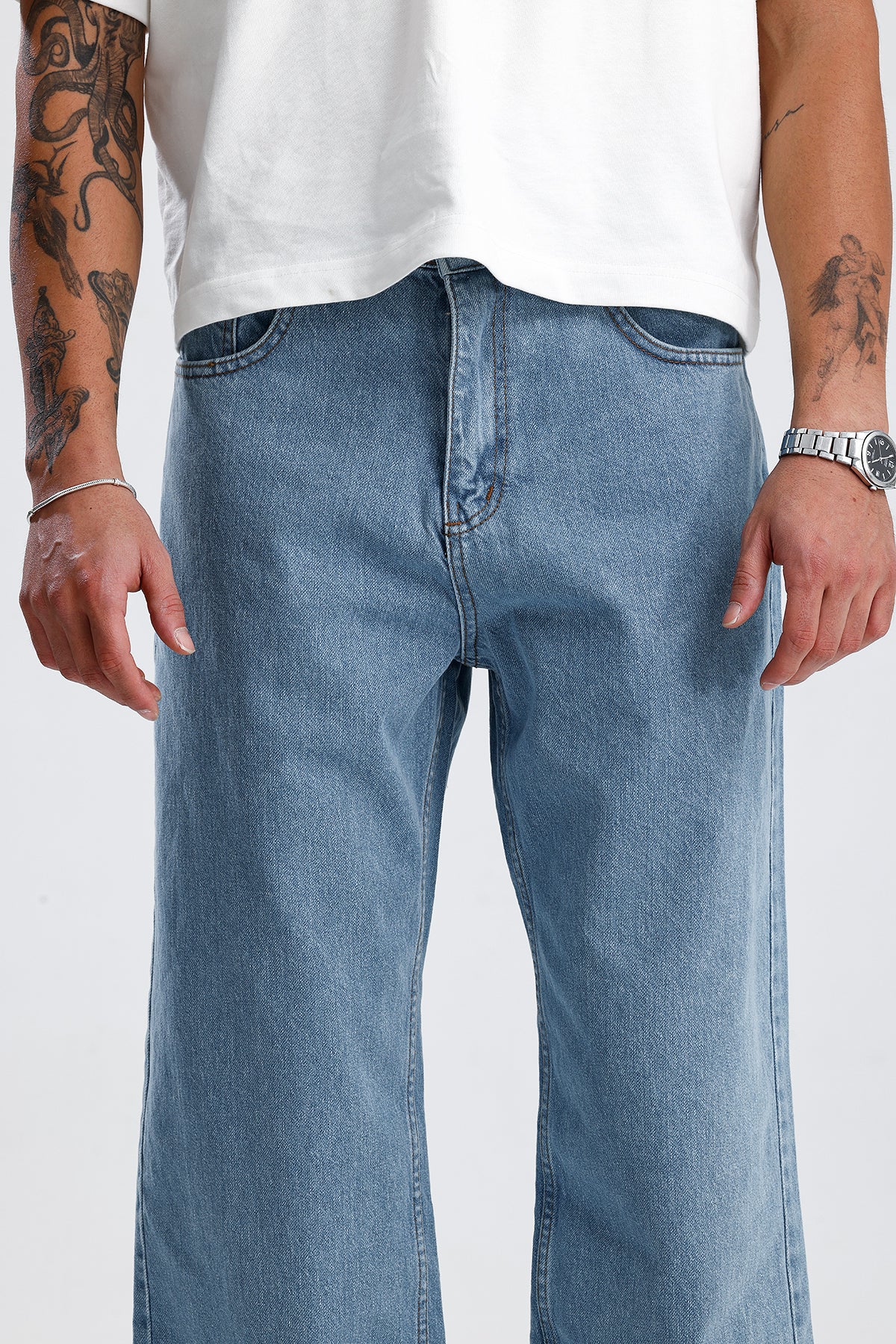 Gökyüzü Mavisi Baggy Kot Pantolon