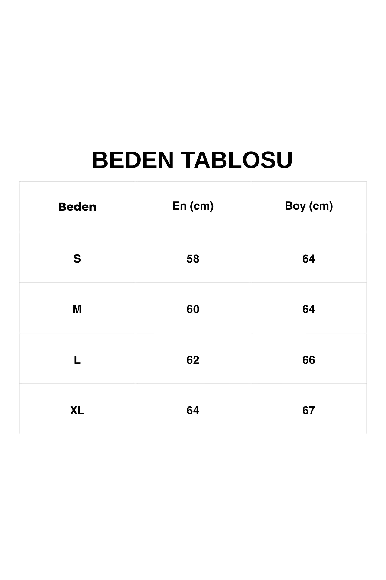 Tekstil ürünlerinde bedenler modele göre farklılık gösterebilir. Doğru beden seçimi için dolabınızdaki benzer bir ürünün ölçülerini referans almanızı öneririz. Ölçülerde +1/-1 cm farklılık olabilir.