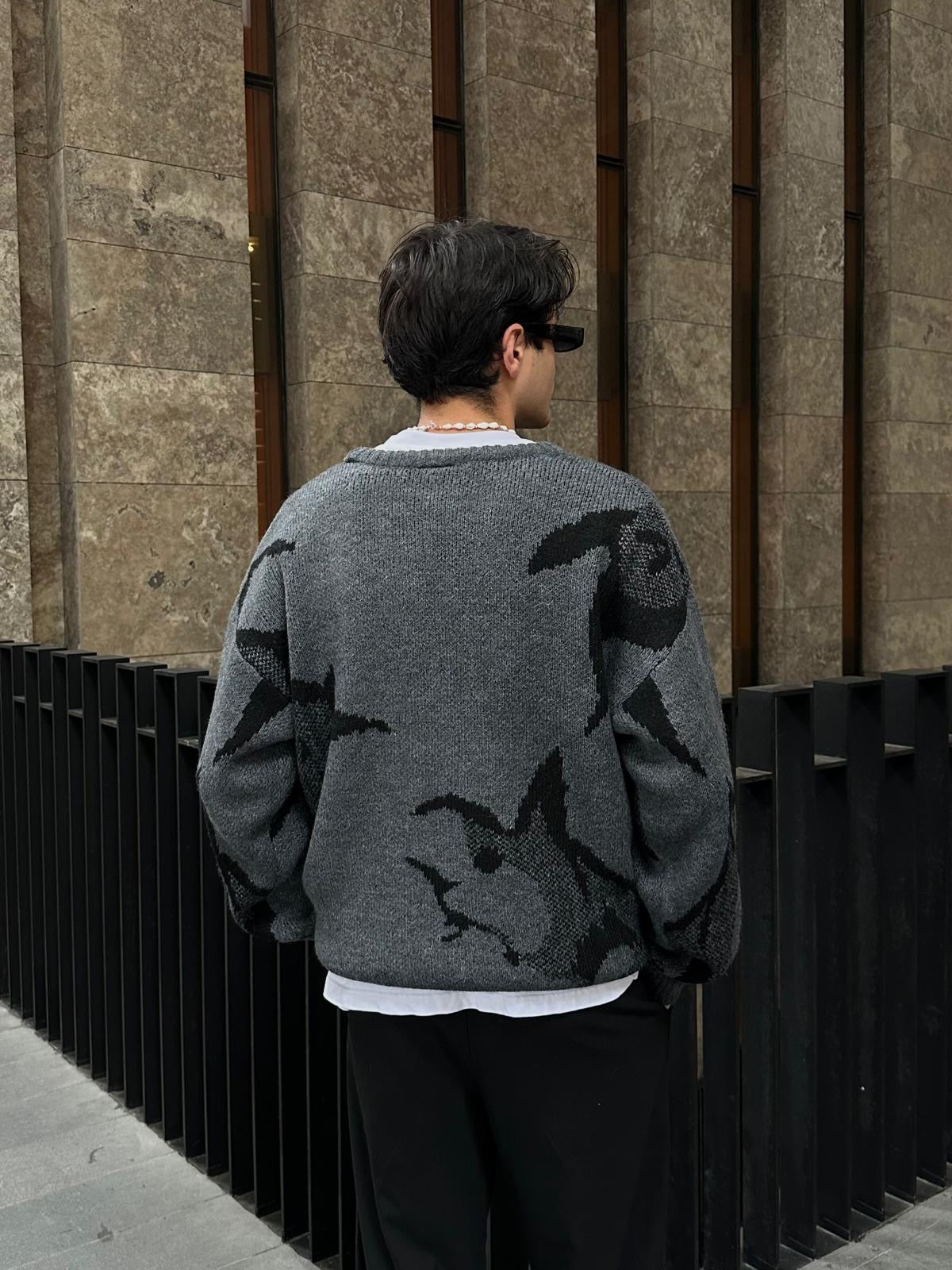 Wolf Premium Baskı Detay Triko Kazak